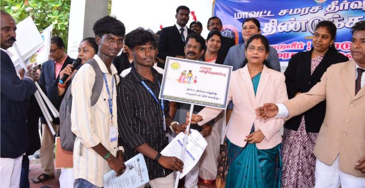 திண்டுக்கல்: திண்டுக்கல் மாவட்ட நீதிமன்ற வளாகத்தில் உச்சநீதிமன்ற உத்தரவின்படி, உயர்நீதிமன்ற வழிகாட்டுதலின்படி சமரச நாள் (Mediation Day) தொடக்க விழா திண்டுக்கல் முதன்மை மாவட்ட நீதிபதி முத்துசாரதா தலைமையில் நடைபெற்றது. இவ்விழாவில் நீதிபதிகள், வழக்கறிஞர்கள், மத்தியஸ்தர்கள், SREE VEE கல்லூரி பேராசிரியர்கள், மாணவ, மாணவிகள், நீதிமன்ற ஊழியர்கள் மற்றும் பொதுமக்கள் உட்பட பலர் கலந்து கொண்டனர். இந்நிகழ்ச்சியில் முதன்மை மாவட்ட நீதிபதி. முத்துசாரதா சமரச விழிப்புணர்வு பிரச்சார பேரணியை கொடியசைத்து தொடங்கி வைத்து, சமரசத்தின் முக்கியத்துவம் மற்றும் பயன்பாடுகள் குறித்து சிறப்புரையாற்றினார். மேலும், சமரசம் குறித்த துண்டு பிரசுரங்களை பொதுமக்களுக்கு வழங்கினார்.