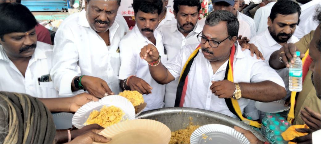 திருவள்ளூர்: திருவள்ளூர் மாவட்டம், மீஞ்சூரில் தேமுதிக நிறுவனர் மறைந்த புரட்சி கலைஞர் விஜயகாந்த் பிறந்த தினத்தை முன்னிட்டு மீஞ்சூர் ஒன்றிய, பேரூர் கழகங்களின் சார்பில் மாநில செயற்குழு உறுப்பினர் கணேஷ்குமார் ஏற்பாட்டில் மீஞ்சூர் நகர செயலாளர் எஸ்.ஜெ.பிரகாஷ் முன்னிலையில் மீஞ்சூர் பஜாரில் கேப்டன் விஜயகாந்த் அவர்களின் திருவுருவ படம் காட்சிக்காக வைக்கப்பட்டு படத்திற்கு மலர் தூவி மலர் அஞ்சலி செலுத்தப்பட்டது. பின்னர் ஏழை எளியவருக்கு அன்னதானம் வழங்கப்பட்டது. திருவள்ளூர் கிழக்கு மாவட்ட செயலாளர் கே.எம்.டில்லி சிறப்பு அழைப்பாளராக கலந்து கொண்டு ஏழை எளியவருக்கு அன்னதானங்களை வழங்கினார். இதில் நகர நிர்வாகிகள் எஸ்.ஜெயபிரகாஷ், நகரச் செயலாளர் வீரப்பன்,நகரத் துணைச் செயலாளர் ராஜா, கிருஷ்ணா, லோகநாதன்,ஆட்டோ சுரேஷ், பாலாஜி அரியன்வாயல் ஷேக் மற்றும் தேமுதிக மாநில, மாவட்ட, ஒன்றிய, நகர மற்றும் பிற அணி நிர்வாகிகள் கலந்து கொண்டனர்.