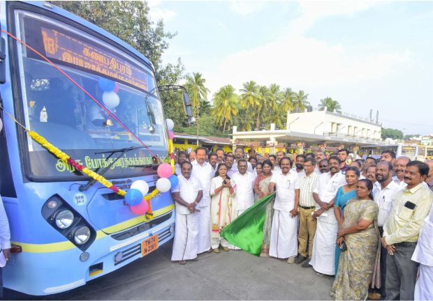 கன்னியாகுமரி: கன்னியாகுமரி மாவட்டத்தின் வடசேரி பேருந்து நிலையத்தில் (07.12.2025) ‘மகளிர் விடியல்’ திட்டத்தின் கீழ் 40 புதிய பெண்கள் சிறப்பு பேருந்து சேவைகள் தொடங்கப்பட்டன. மாண்புமிகு பால்வளத்துறை அமைச்சர் திரு. த. மனோ தங்கராஜ் அவர்கள், மாவட்ட ஆட்சித்தலைவர் திருமதி ஆர். அழகுமீனா, இ.ஆ.ப., அவர்களுடன் இணைந்து கொடியசைத்து புதிய பேருந்து சேவைகளை துவக்கி வைத்தார்.